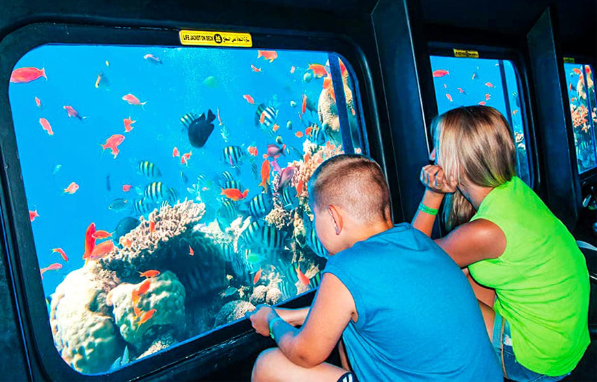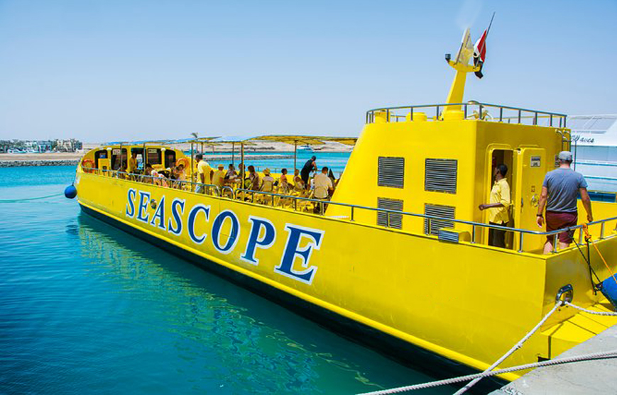 انضم إلينا في رحلة رائعة تحت الماء. يمكنك أن ترى بوضوح وتصور الشعاب المرجانية الأكثر شهرة في البحر الأحمر (من فضلك لا تلمس الشعاب المرجانية ولا تقف عليها) و نرى الأسماك وغيرها من الحياة البحرية. من خلال النوافذ البانورامية الكبيرة وفي الكرسي الدوار الخاص بك بالتأكيد لن يفوتك أي شيء !. يمكن أن يستوعب Sea Scope الزوار في منطقة آمنة ومكيفة.