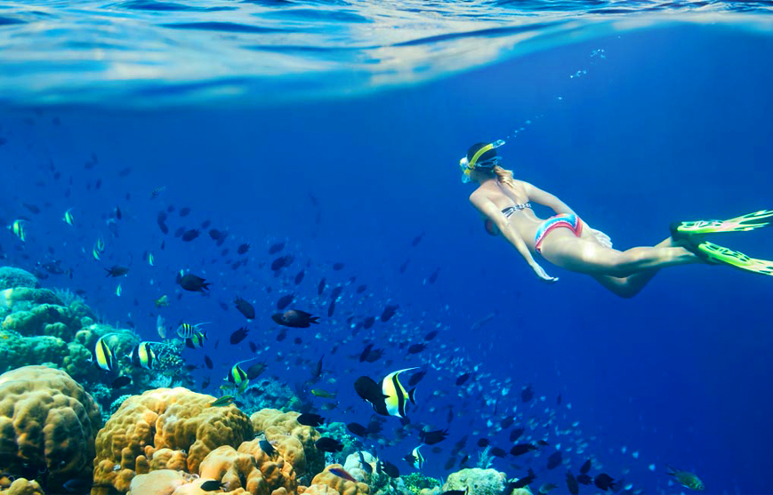 - نص ساعه سنوركل ( سباحه) مع توافر ماسك وزعانف